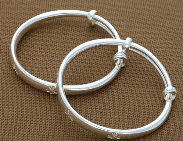 Flower Engravings Plain Adjustable Silver Kid Bangle(Pair)